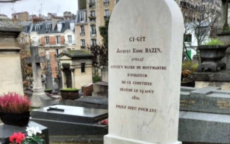 21/11 La tombe de Jacques Edmé Bazin restaurée. Maire de la commune de Montmartre de 1829 à 1831, c'est sous son mandat qu'est créé le cimetière Saint-Vincent (18e). La cellule patrimoine du service des cimetières parisiens a entièrement nettoyé sa tombe, la dalle a été retaillée et rehaussée, et les inscriptions re-gravées.