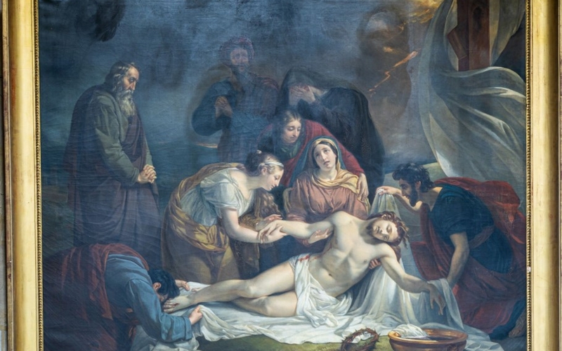 24/12 Matrimoine parisien. A l'occasion du retour du tableau Le Christ descendu de la croix d'Amélie Legrand de Saint-Aubin à l'église Saint-Etienne-du-Mont (5e), plongez dans les œuvres des femmes artistes peintres - Nélie Jacquemart, Marthe Flandrin, Hélène Bertaux, Marie d'Orléans - présentes dans les églises de la Ville.