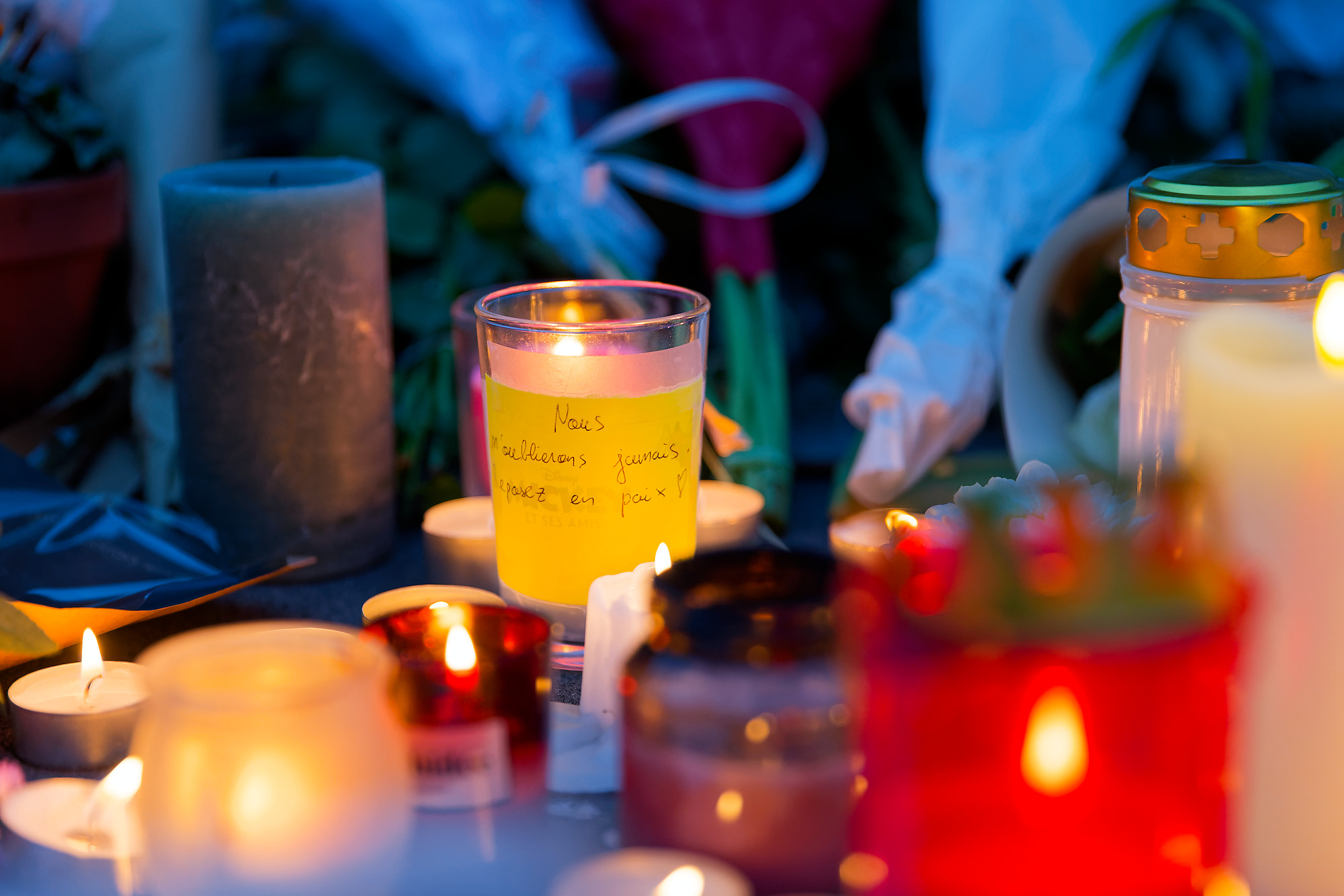 Des bougies allumées en hommage aux victimes des attentats du 13 novembre, place de la République.