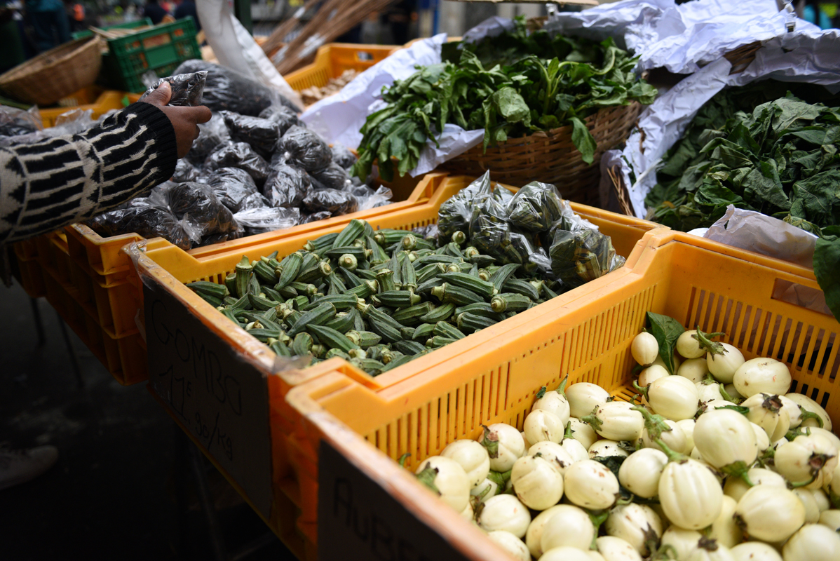 Aubergines africaines et gombos au marché Dejean, à Château Rouge (18e).