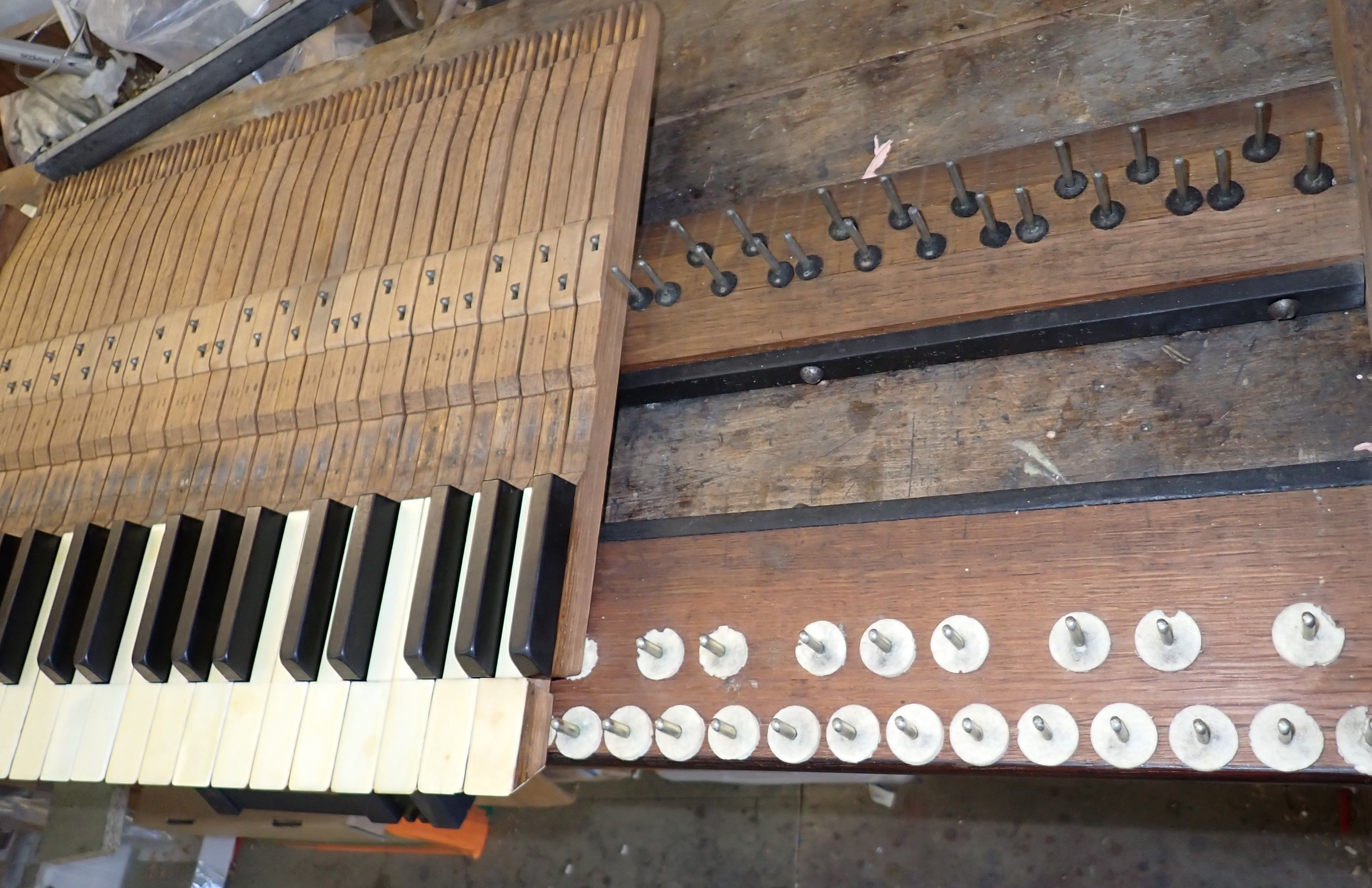 Claviers de l'orgue de choeur de l'église Saint-Merry en cours de réparation.