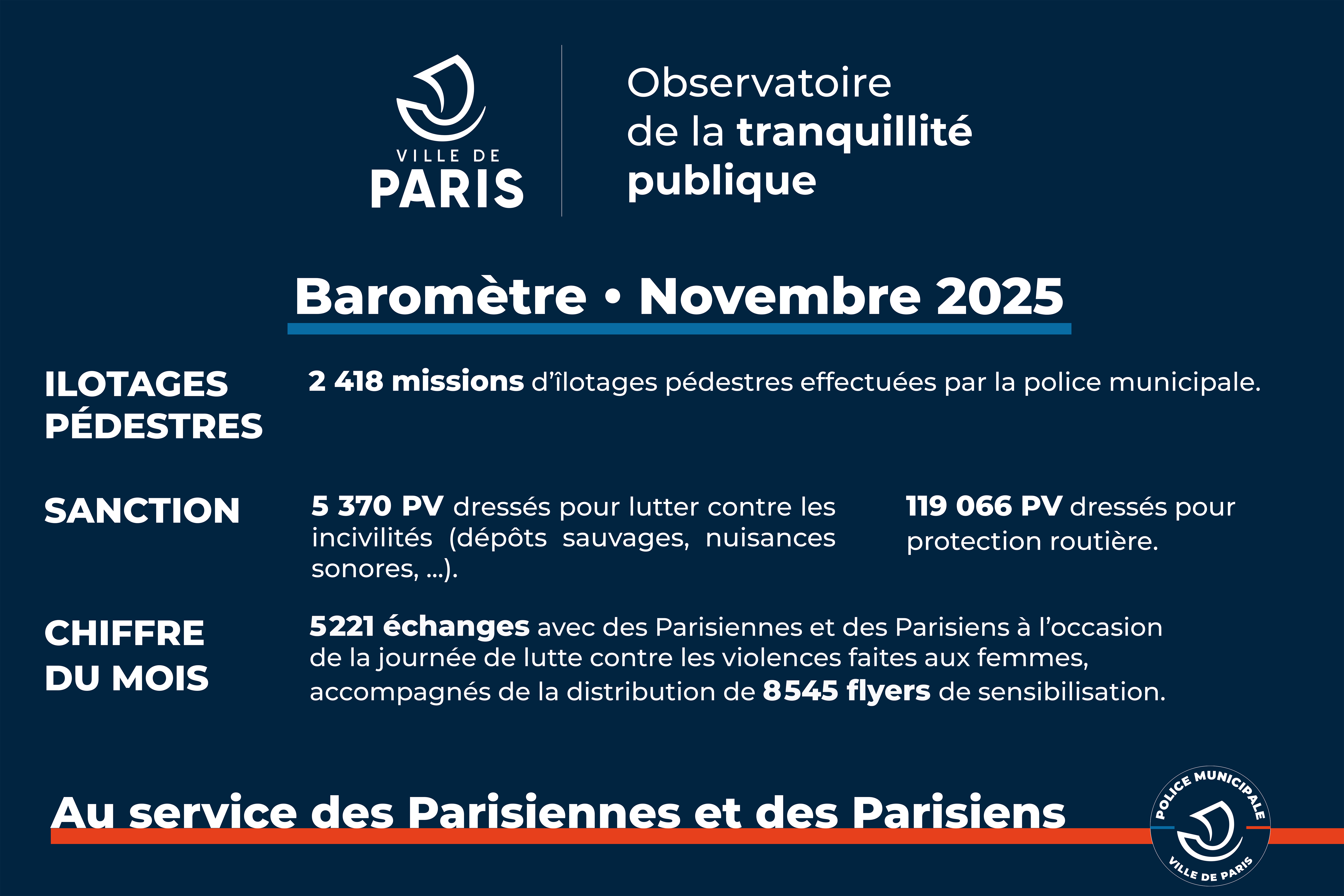 À ses baromètres mensuels s’ajoutent des bulletins trimestriels, pour informer les Parisiennes et les Parisiens de l’action de leurs policiers municipaux, et communiquer sur les attentes des habitants.