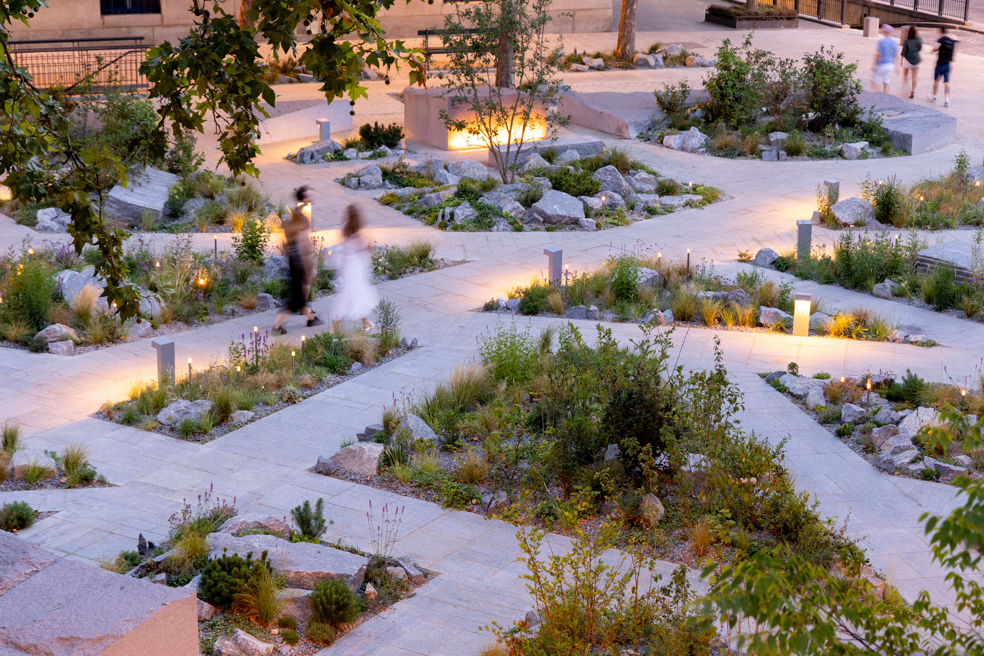 Préfiguration du futur jardin mémoriel place Saint-Gervais - Vue des espaces plantés