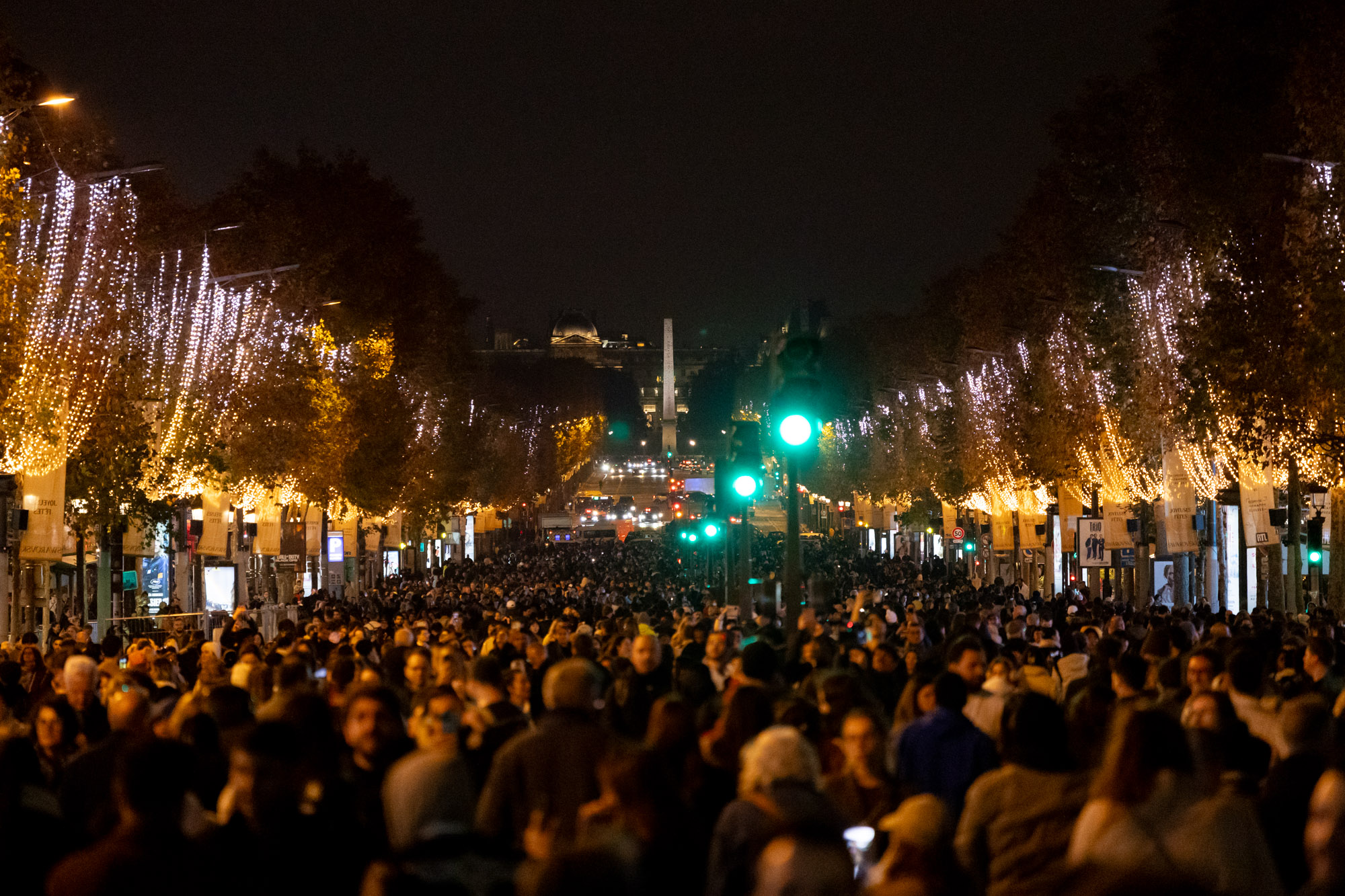 Selon le média Le Parisien, près de 200 000 personnes ont assisté à l'inauguration des illuminations.