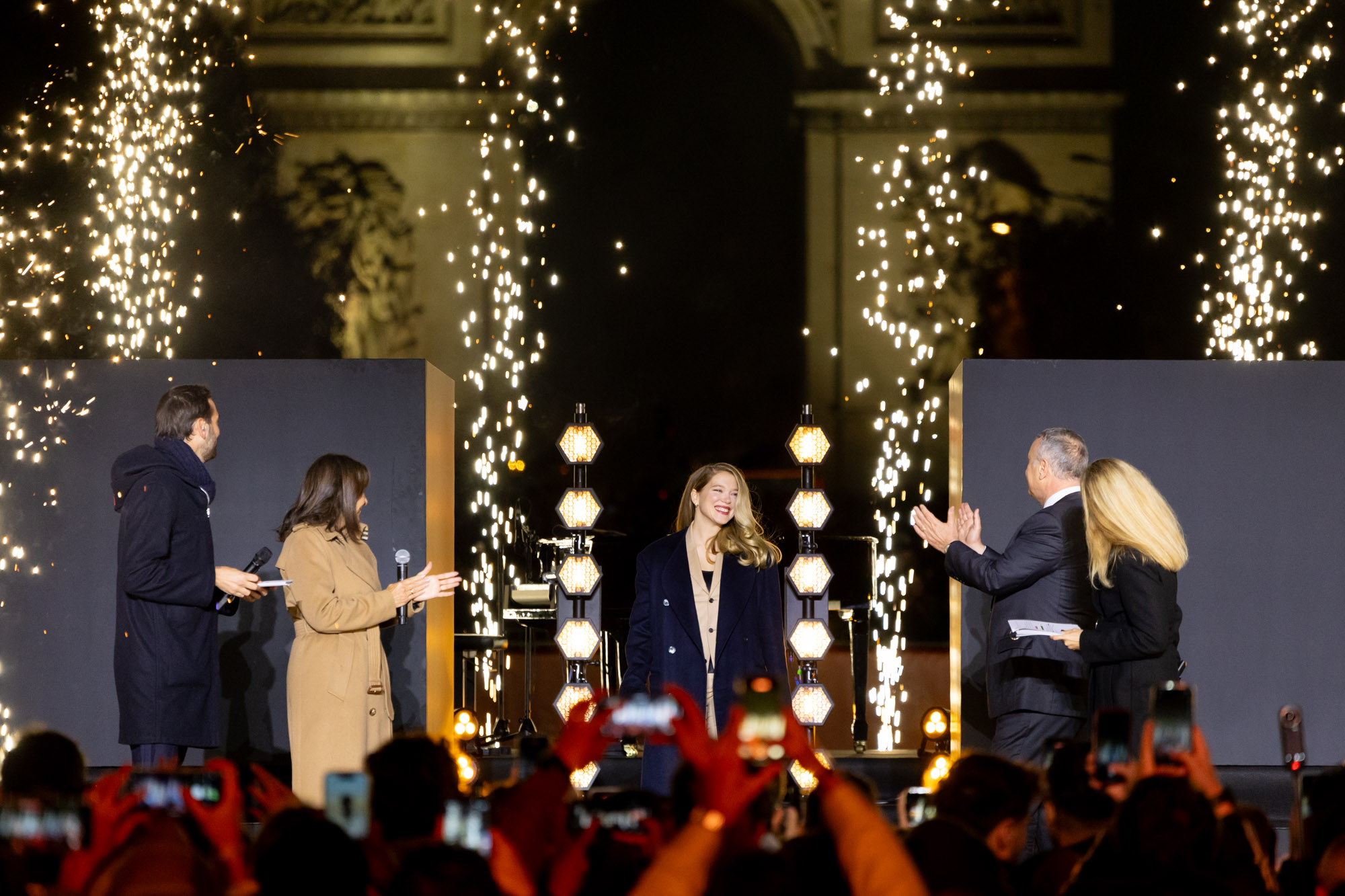 Le coup d'envoi des festivités a été donné par l'actrice Léa Seydoux, marraine de l'évènement, accompagnée du comité des Champs-Élysées et de la chanteuse canadienne Charlotte Cardin qui a interprété son titre « Tant pis pour elle ».
