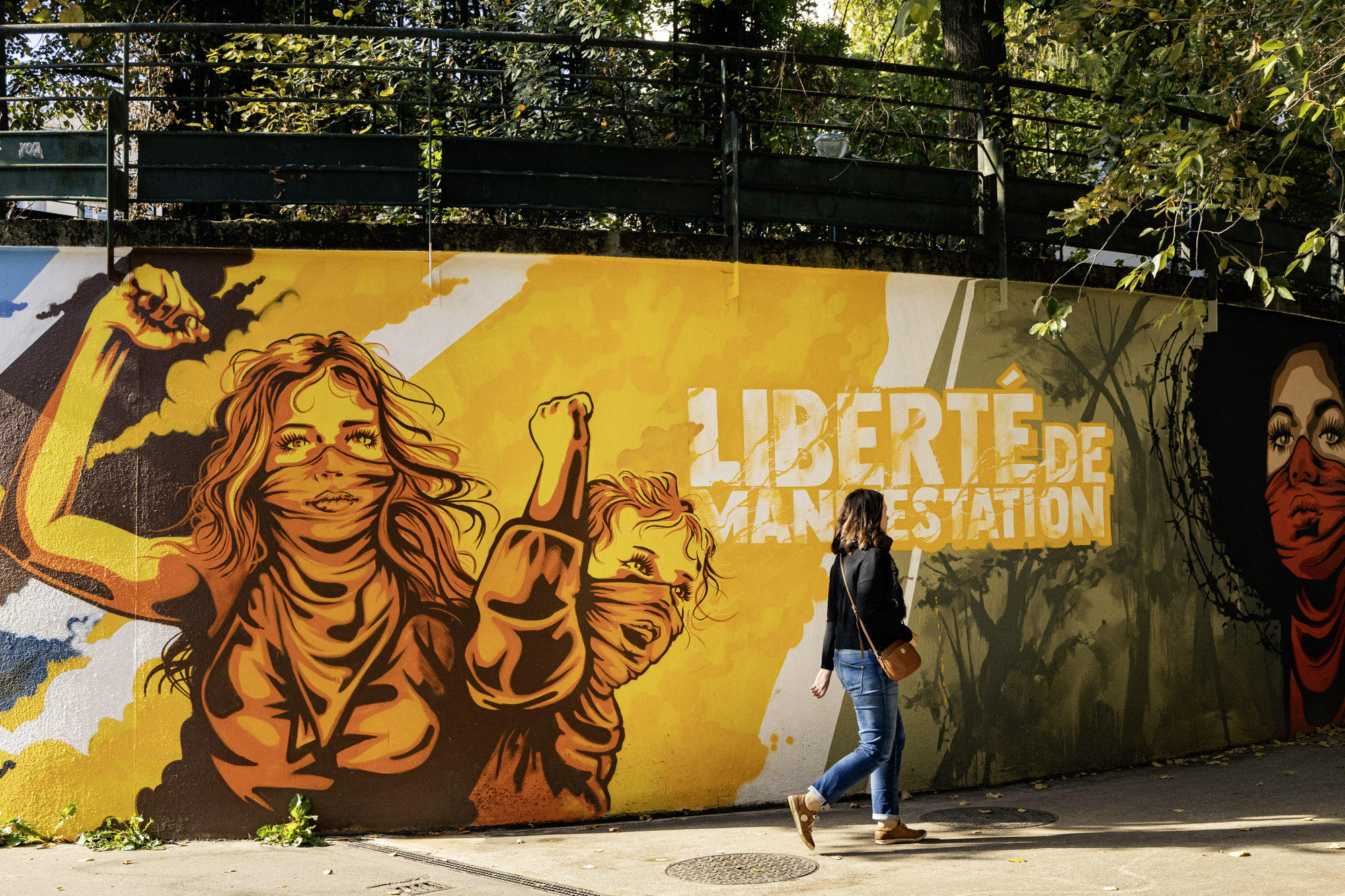 Dans le 12e, le mur des droits humains met à l’honneur la liberté de manifestation grâce au travail de l’artiste RNST.