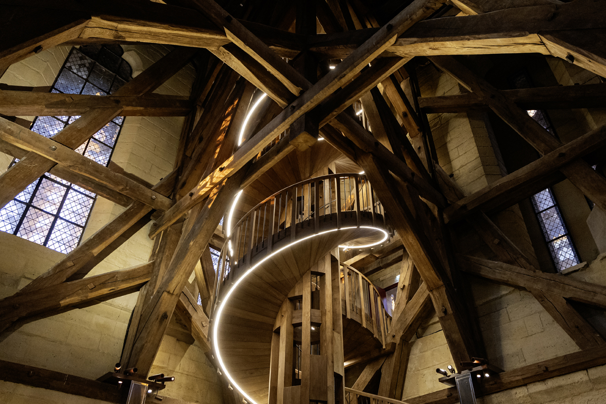 Ce monumental escalier à double révolution mène jusqu’aux tours de Notre-Dame, rouvertes au public depuis le mois de septembre.