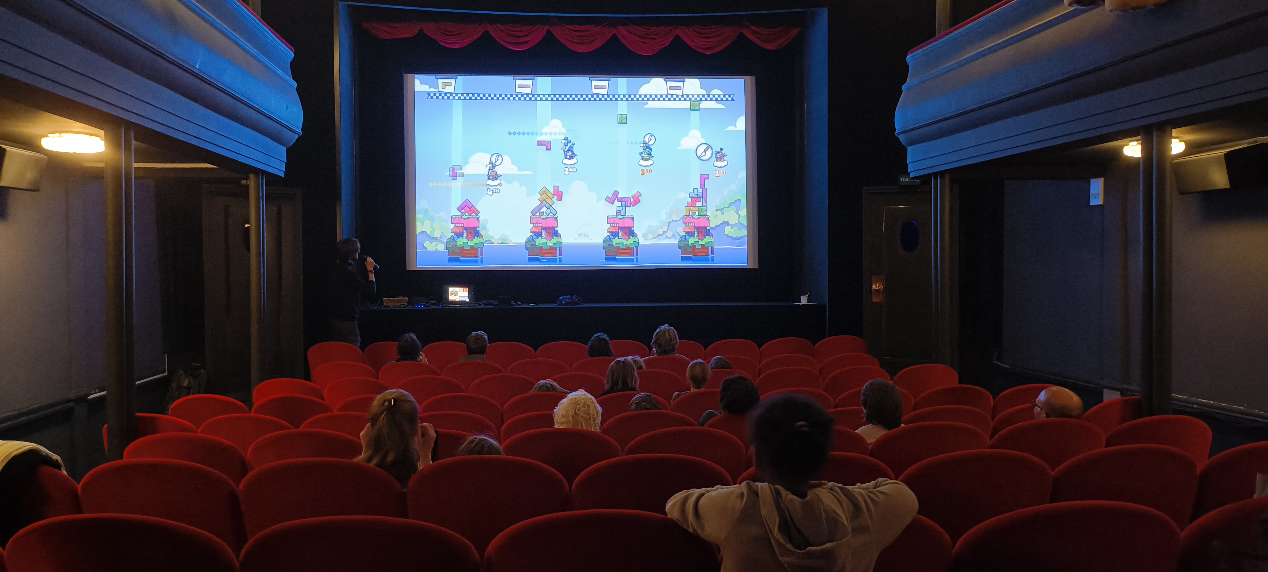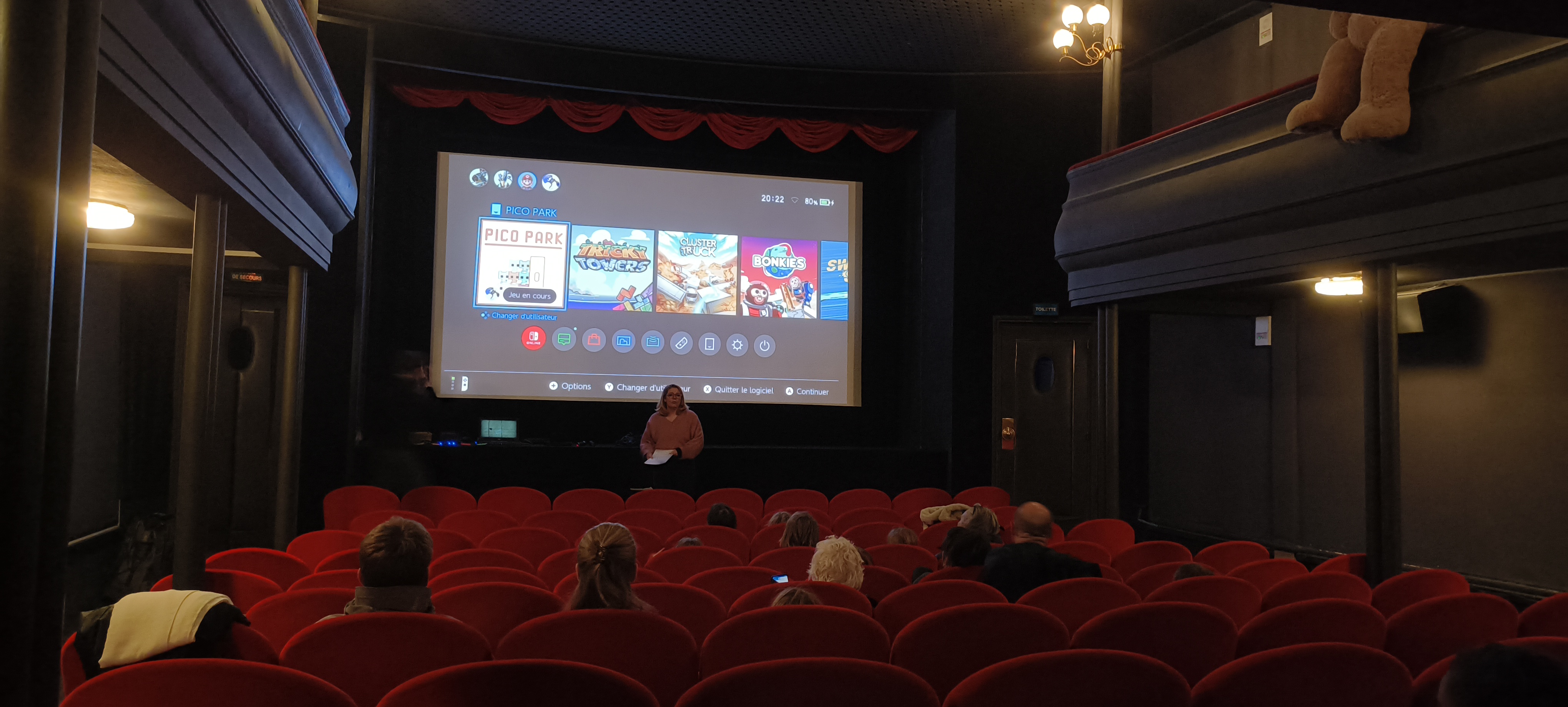La société Playful a accompagné l'avant-séance de Riddle of fire en proposant aux spectateurs des jeux vidéos coopératifs sur grand écran.